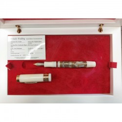 Edizione limitata: n°117/388, corpo in argento massiccio con filigrana oro 18 carati e resina organica color avorio, pennino in oro 23 carati e palladio