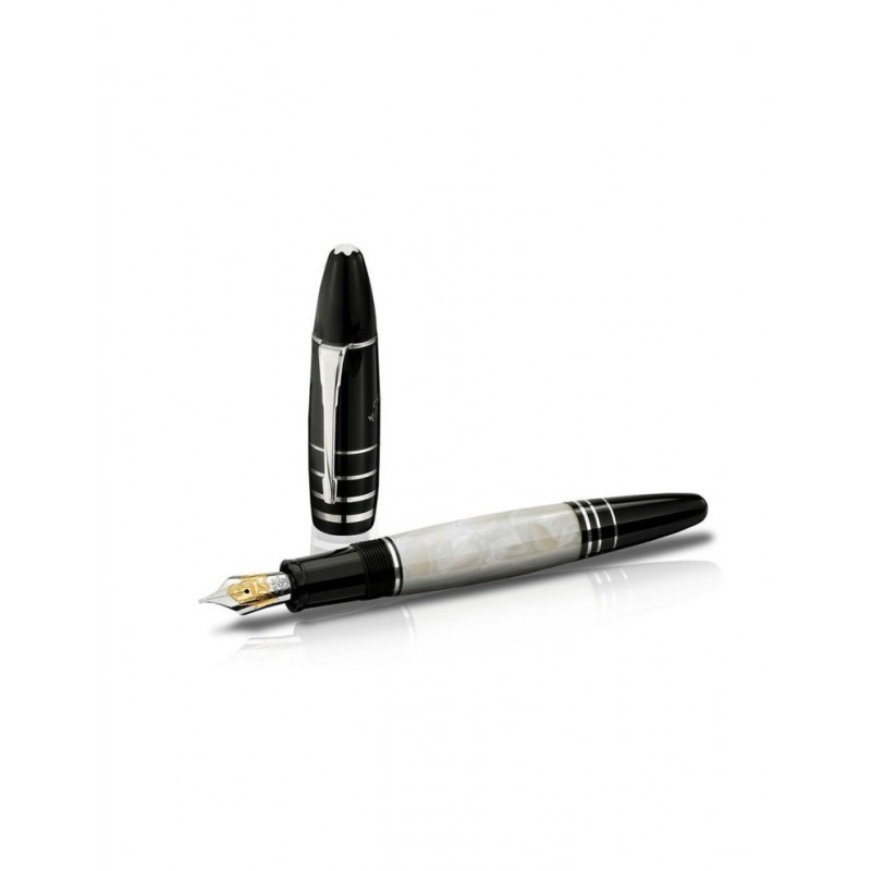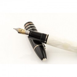 Penna in pregiata resina nera con finiture platino, pennino in oro 18 carati lavorato a mano. Edizione Limitata